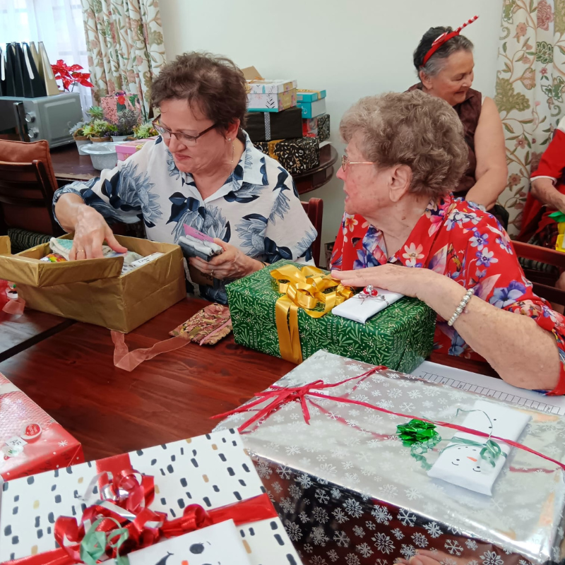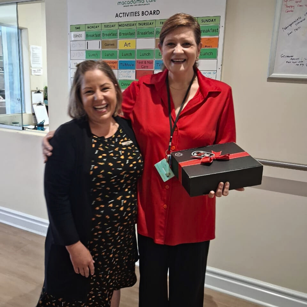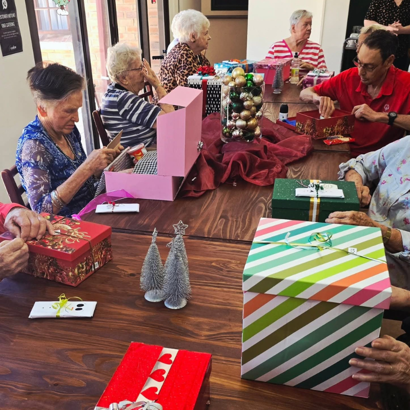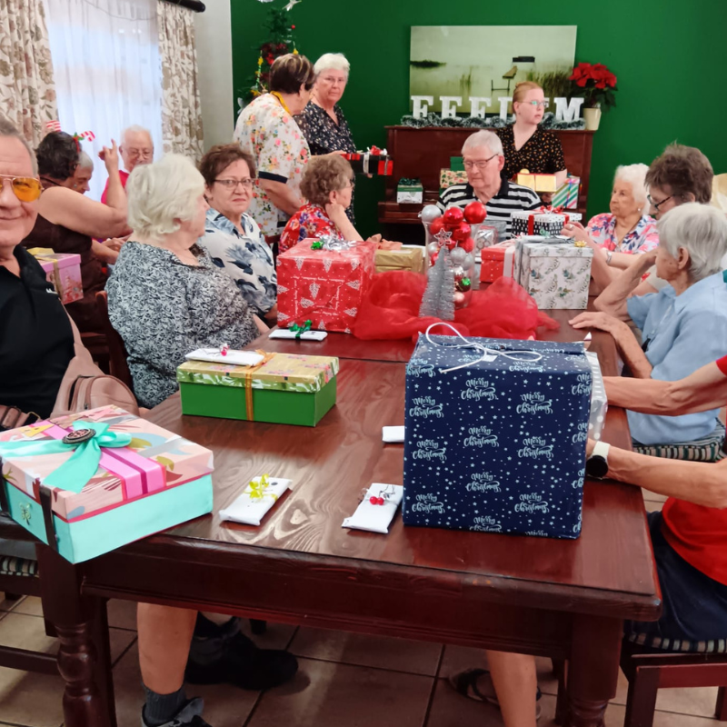 One of our wonderful residents, Mrs. Lia De Bruyn, inspired her friends to create a special ‘shoebox’ gift for our residents. The generosity and love shared were simply incredible. Along the hallway, stockings were hung with care, a festive surprise for our carers, little bundles of thanks and Christmas cheer, ready to brighten someone’s day and bring joyful smiles.